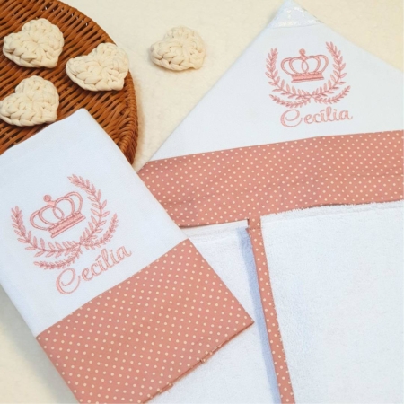 • Kit Toalha Capuz + Fralda Boca Rosê