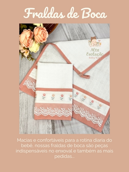 O Kit Enxoval Menina – Bordado Mini Rosas com Renda foi cuidadosamente desenvolvido para oferecer conforto, delicadeza e charme nos primeiros cuidados com o bebê. Confeccionado com materiais de alta qualidade, o kit reúne peças essenciais para o dia a dia, todas produzidas com carinho e atenção aos detalhes.
