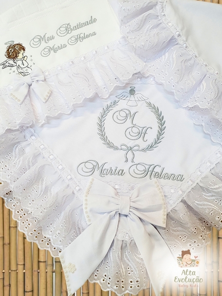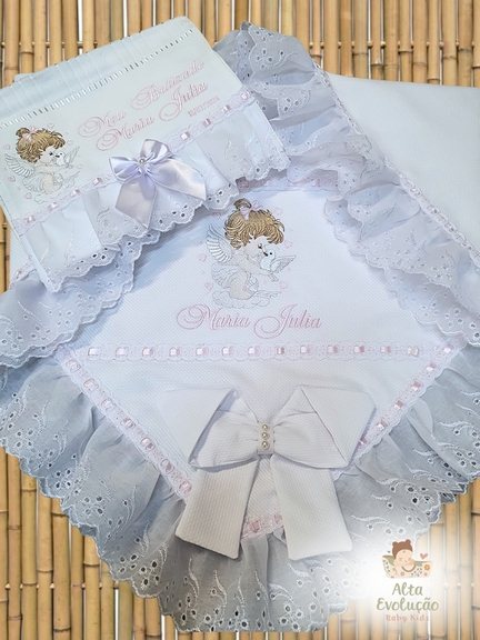 O bordado da anjinha confere um charme especial e delicado, tornando o kit ideal para o uso diário, acolhendo o bebê com conforto, ou como presente encantador e sofisticado.